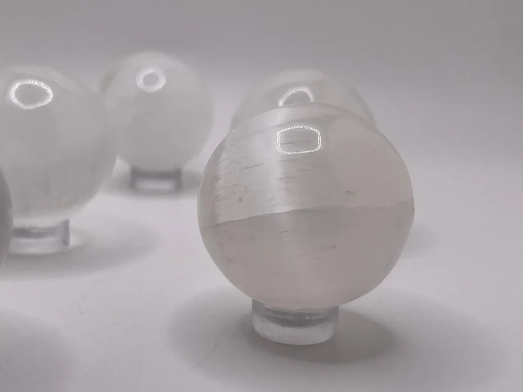 Découvrez notre Petite Sphère en Sélénite (Satin Spar), une merveille géologique façonnée à la main par nos artisans marocains. Cette forme parfaitement ronde révèle l'effet chatoyant unique du satin spar, créant un jeu de lumière hypnotisant qui évoque la lueur douce de la lune. Chaque sphère est une pièce unique, sculptée dans la sélénite fibreuse de nos gisements près de Midelt.